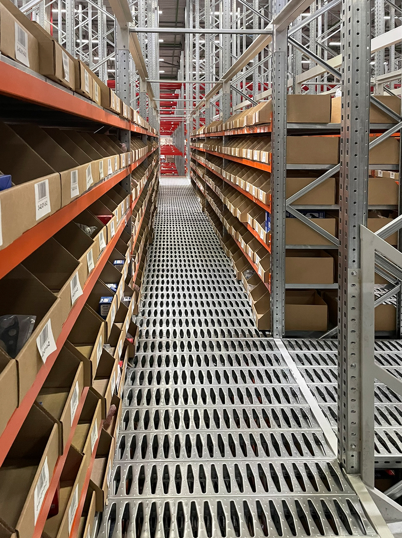Монтаж первого этапа пятиэтажного мезонина завершен. Это не первый наш проект в столице Урала, но теперь он самый крупный - общая площадь застройки составила более 2500 квадратных метров. Универсальная стеллажная система включает в себя колонную, полочную и паллетные части. Многоуровневый мезонин оснащен полками из оцинкованной стали, проливными полами и блоками безопасной загрузки (по-другому называемые, перекидными либо вертикальными паллетными воротами). Также специалистами было предусмотрено место под установку конвейерной транспортной системы. Помимо мезонина, были установлены стеллажи в зону приемки товара и комплектации заказов. Все работы произведены строго в соответствии с графиком и условиями договора.